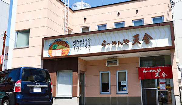 1952年の創業以来、旭川ラーメンの伝統を守りながら、新しい世代のファンも獲得している名店。とんこつをベースにした深いコクのあるスープは、まさに天金の誇りです。スープが少し濁っているように見えるのは、ラードを加えて表面に油膜をつくり、スープの熱を逃がさないようにしているから。氷点下が当たり前の旭川ならではの工夫は、お客さんへのあたたかな想いから生まれました。もちろん、自慢のスープと相性バツグン、箸の動きがとまらなくなる麺も天金ならではの魅力です。スープに絡みやすい、加水率の低い中太の縮れ麺は、こだわりのスープと主役の座を競うように、その際立つ個性を自己主張しています。さらに、「脇役」の域を超えた具材の存在感も見逃せません。しっかりと歯ごたえのある本格チャーシュー。新鮮で香りのよい長ネギ。コリっとした食感がクセになるメンマ。ラーメンの具材は、それぞれ厳しい目で吟味された良質素材ばかり。
