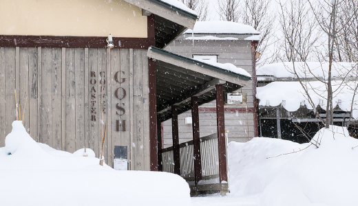 美瑛町の小高い丘に建つ自家焙煎珈琲店「Gosh」は、香り高いコーヒーと天然酵母パンが評判の店。おすすめは深煎りコーヒーで、豆の個性を見極め、水洗いと乾燥というひと手間を加えることで、苦みとともに香りや甘みを引き出しています。深煎りを中心にさまざまな種類のコーヒーを提供、自家焙煎した豆も販売しています。店主ご夫妻は旅行で訪れた美瑛の魅力に引かれ、移住を決めました。ここで自然に寄り添いながら、“自分がおいしいと納得できる味”を追求し続けます。カフェはコーヒーとケーキのみの提供。パンはテイクアウト専門です。