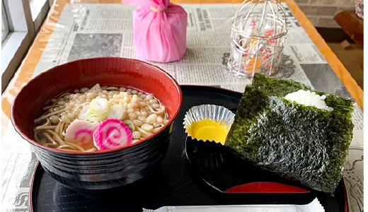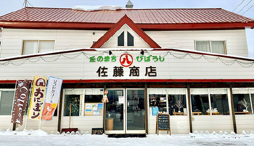 美馬牛駅前で食料品などを扱う地域の商店。郊外のこうした商店がどんどん減っていく中、地域に欠かせない生活インフラとして重宝されているお店です。イートインスペースもあり、お座敷でおにぎりやそば、いちごミルクなどのドリンクをオーダーできます。日本のローカルの風情たっぷりで、観光客も立ち寄りやすいお店です。
