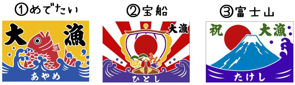 작은 대형 낚시 깃발은 세 가지 길조 디자인으로 제공됩니다.